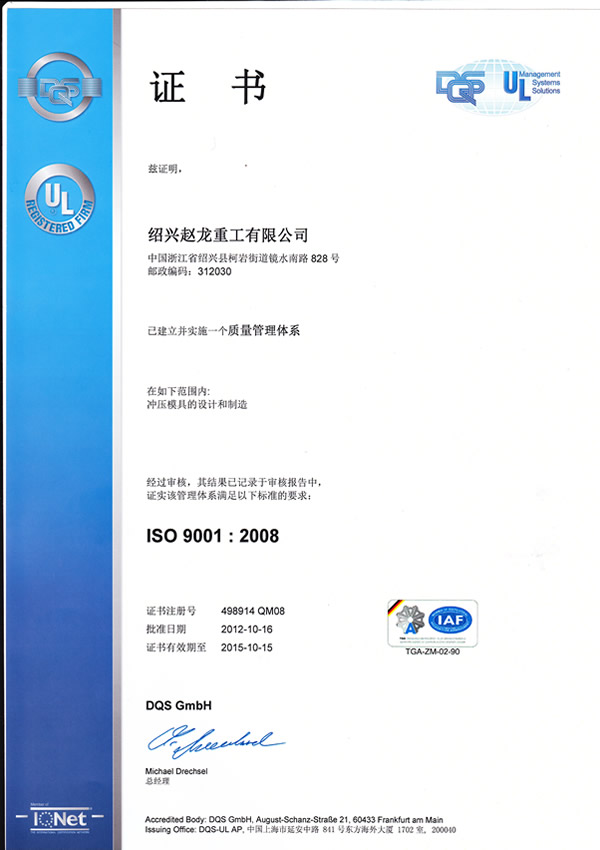 熱烈祝賀公司通過ISO/TS16949:2009和ISO9001:2008質(zhì)量管理體系認(rèn)證