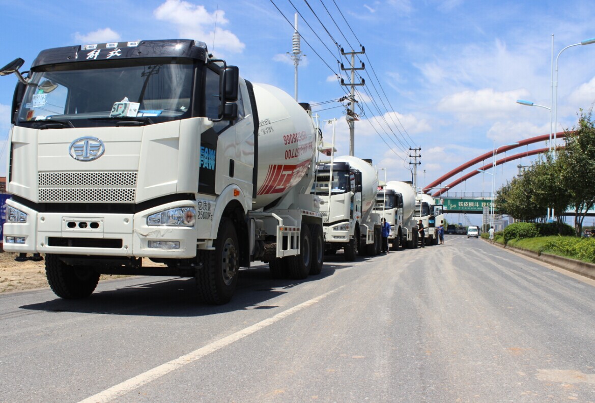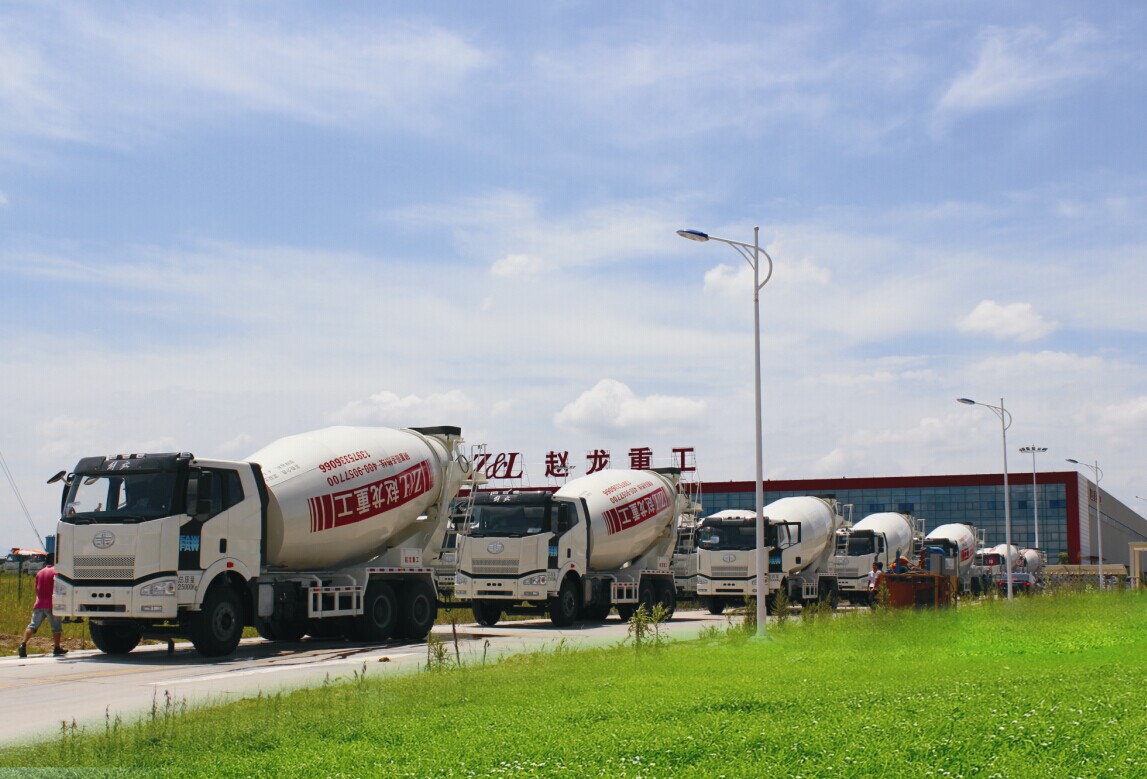 2014年7月17日下午,10臺(tái)嶄新的攪拌車齊聚趙龍重工義烏生產(chǎn)基地廠區(qū)大門整裝待發(fā),即將發(fā)往湖南長沙市西城偉業(yè)混凝土有限公司。
